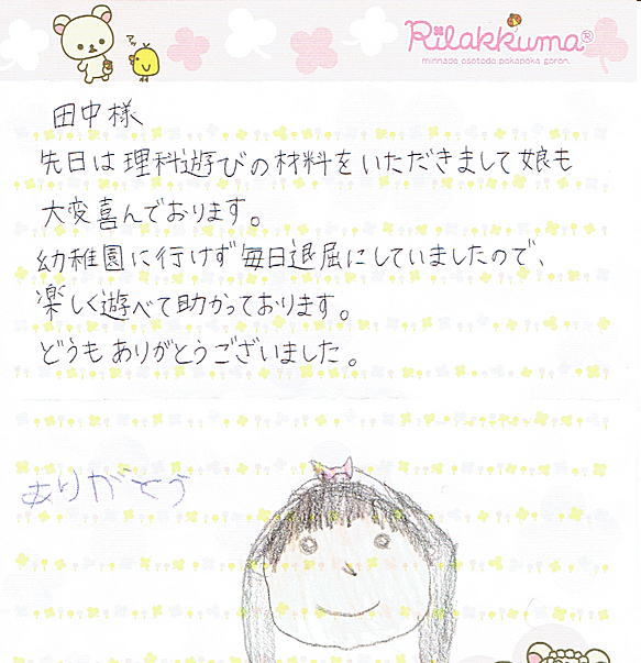 ★★「夏休み自由研究理科実験」参加のお友達から嬉しいお便りと写真が届きました。