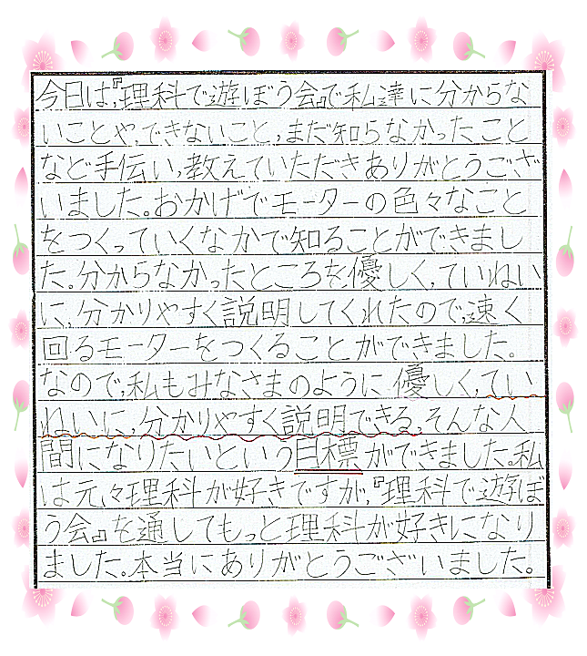 ★★ ある小学校でのモーター授業感想文の一部です。