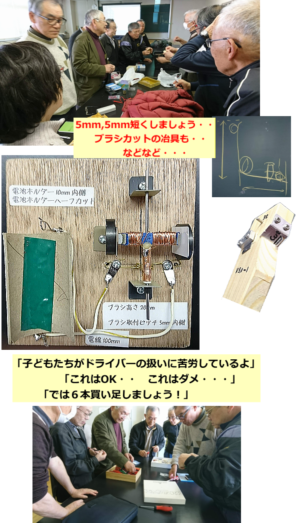 ・参加者10人で残りの時間、モーターの部品つくりに精を出しました。