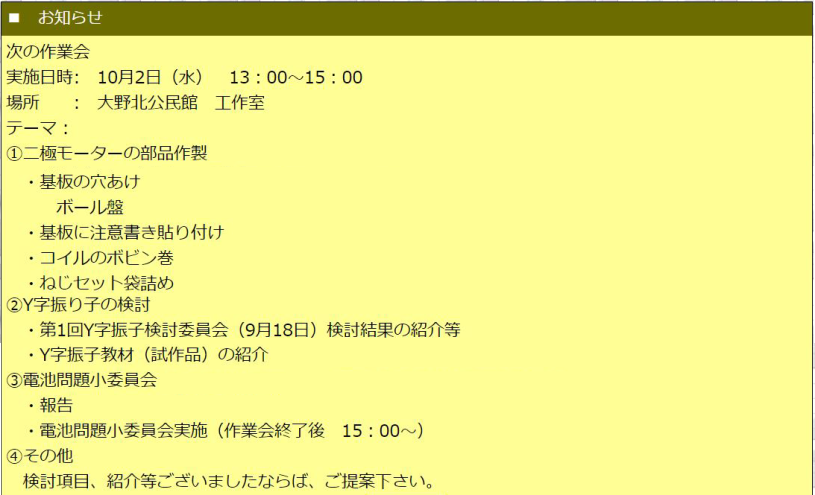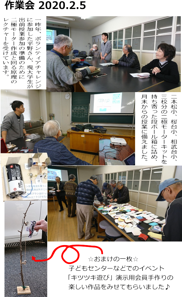 ★★ 新型コロナウイルス感染症拡大防止のため、作業でお借りする公民館がクローズとなり今年度の作業会は中止となりました。自宅で来年度の実験教材をコツコツと作る会員の声も届きました★★